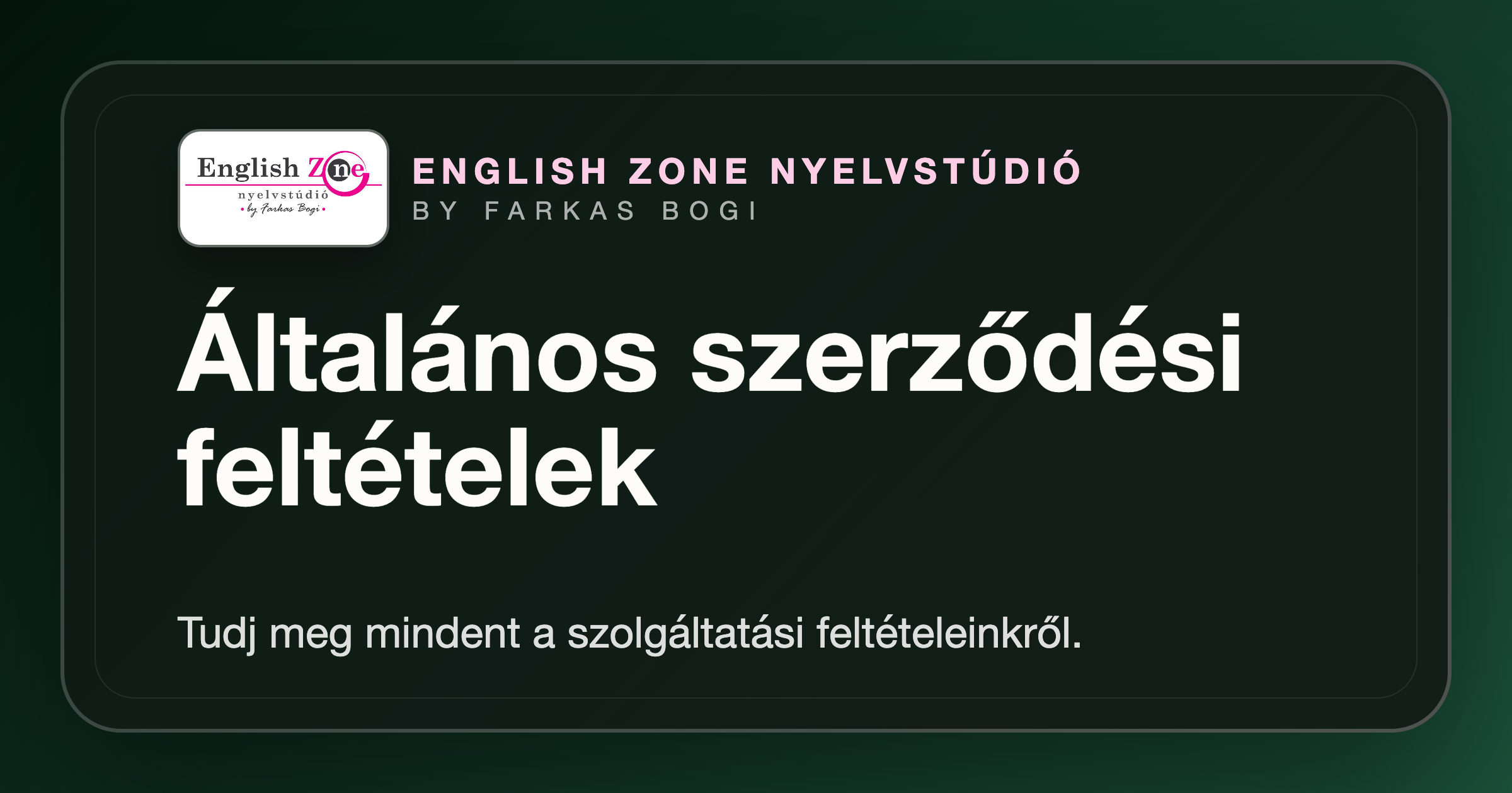Jelen Általános Szerződési Feltételek ("ÁSZF") a szolgáltató és az ügyfelek között létrejövő minden olyan szolgáltatási jogviszonyra vonatkoznak, amely az angol nyelv oktatásához kapcsolódó szolgáltatások igénybevételével jön létre.