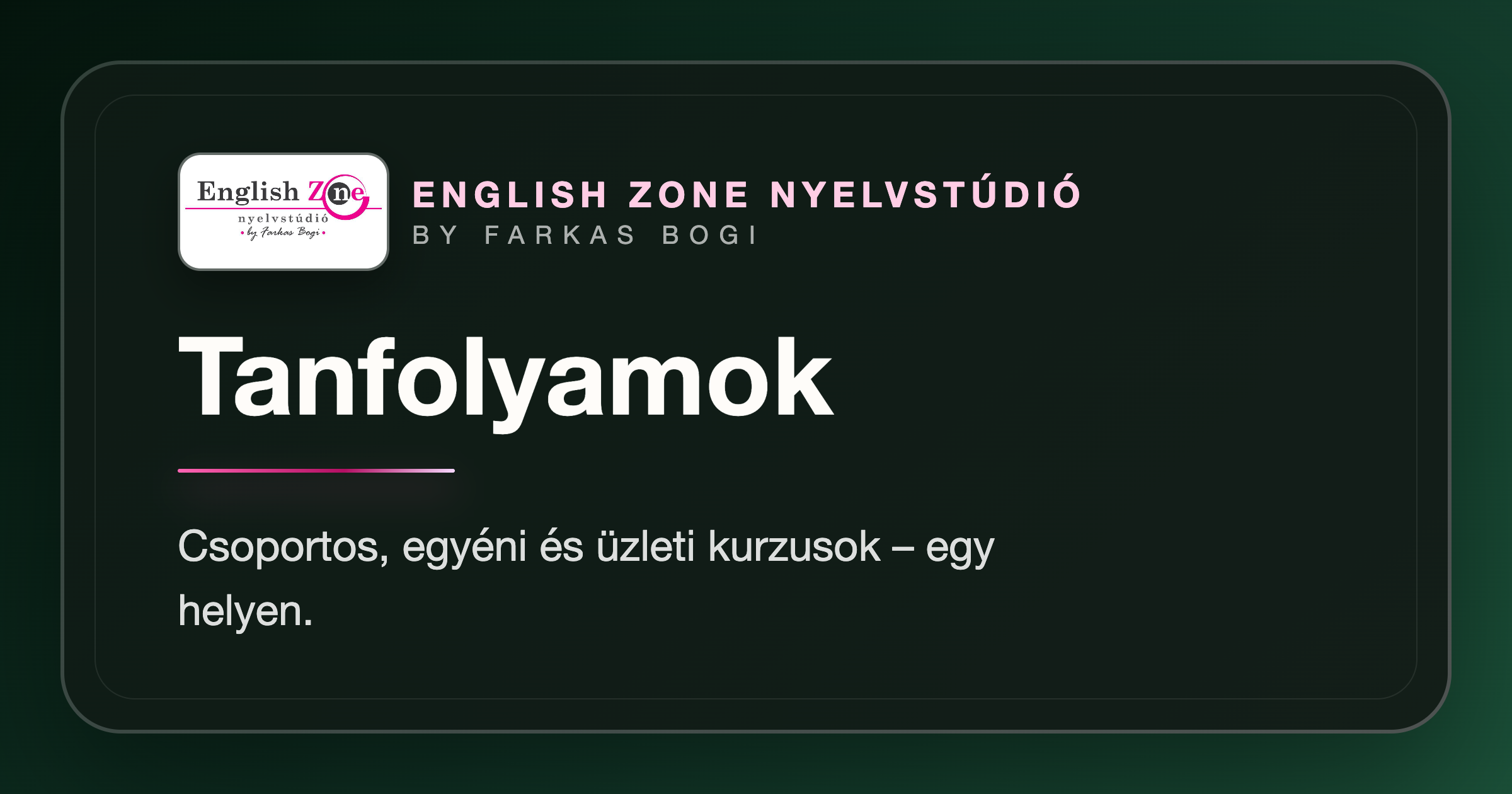 Válogatott tanfolyamok eltérő célokhoz – általános, üzleti, vizsgafelkészítő és egyéni órák. A tényleges tematika és órarend a jelenlegi kínálathoz igazítható.